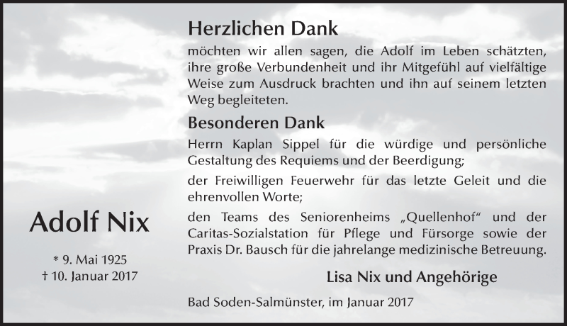 Hier finden Sie alle Traueranzeigen aus der Zeitung, die bisher für Adolf Nix erschienen sind. Weitere Traueranzeigen, die in der Zeitung erscheinen, werden hier ebenfalls aufgelistet