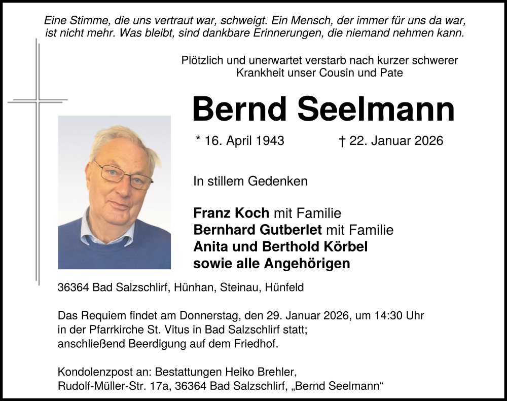 Hier finden Sie alle Traueranzeigen aus der Zeitung, die bisher für Bernd Seelmann erschienen sind. Weitere Traueranzeigen, die in der Zeitung erscheinen, werden hier ebenfalls aufgelistet