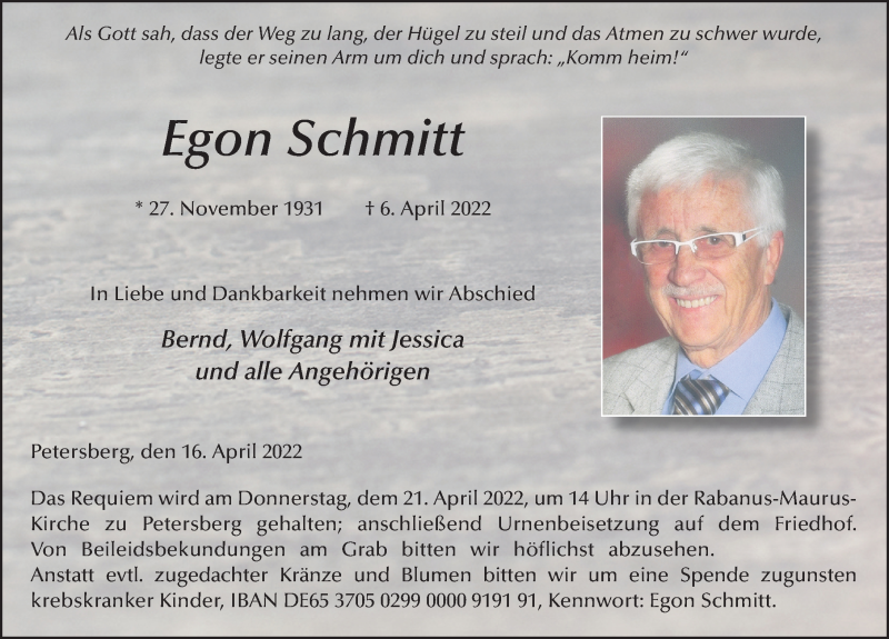 Hier finden Sie alle Traueranzeigen aus der Zeitung, die bisher für Egon Schmitt erschienen sind. Weitere Traueranzeigen, die in der Zeitung erscheinen, werden hier ebenfalls aufgelistet