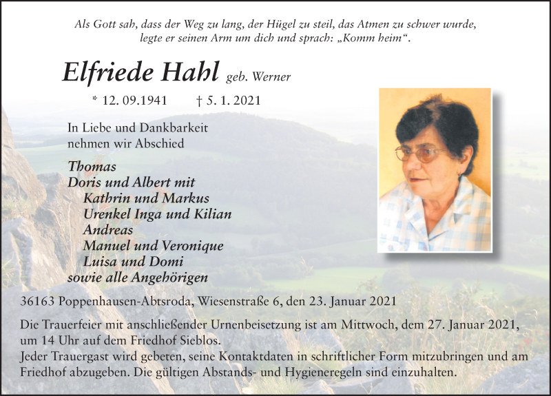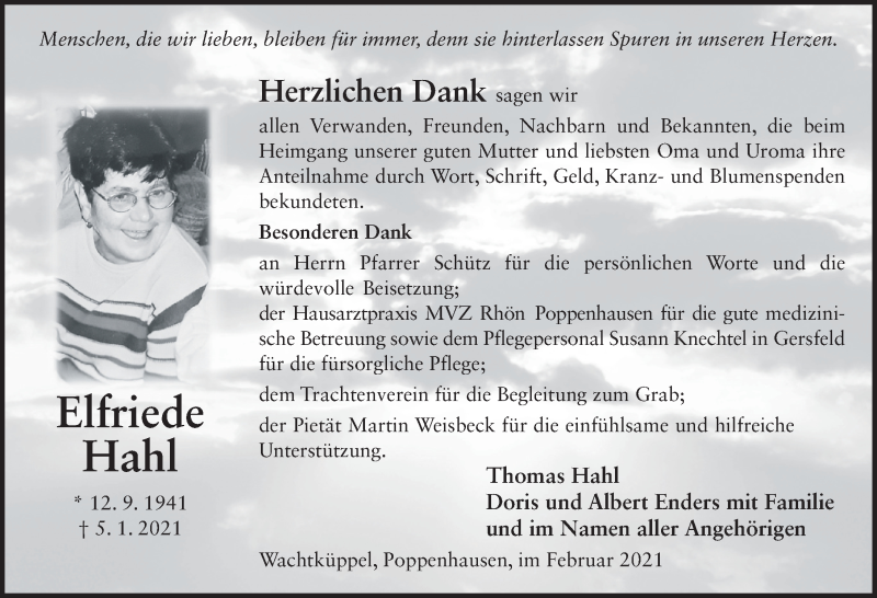 Hier finden Sie alle Traueranzeigen aus der Zeitung, die bisher für Elfriede Hahl erschienen sind. Weitere Traueranzeigen, die in der Zeitung erscheinen, werden hier ebenfalls aufgelistet