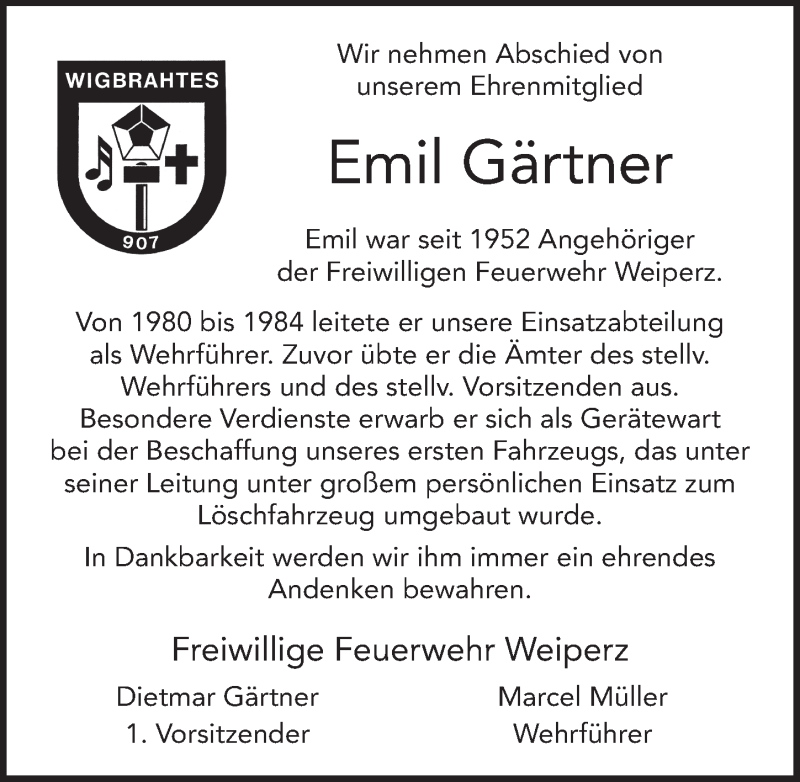 Hier finden Sie alle Traueranzeigen aus der Zeitung, die bisher für Emil Gärtner erschienen sind. Weitere Traueranzeigen, die in der Zeitung erscheinen, werden hier ebenfalls aufgelistet