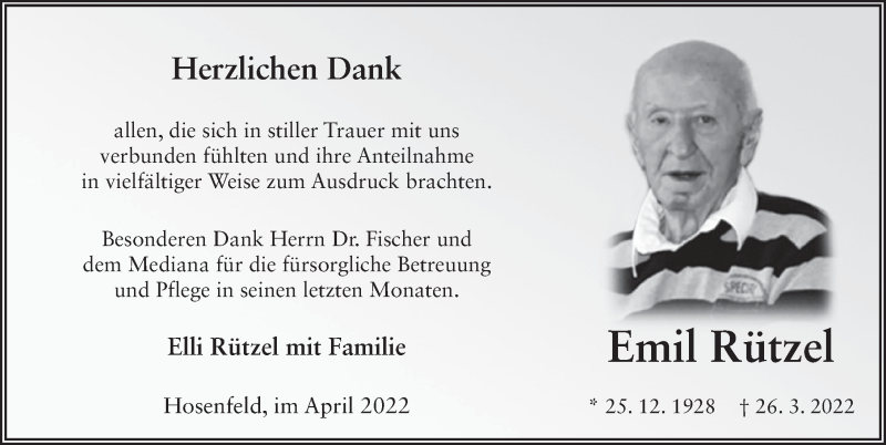Hier finden Sie alle Traueranzeigen aus der Zeitung, die bisher für Emil Rützel erschienen sind. Weitere Traueranzeigen, die in der Zeitung erscheinen, werden hier ebenfalls aufgelistet