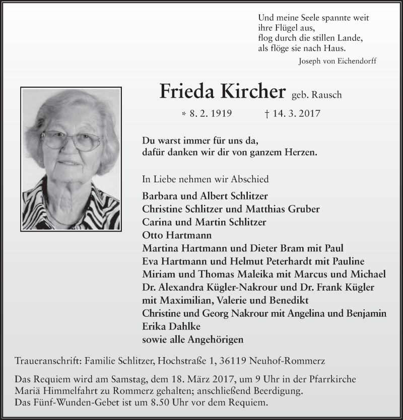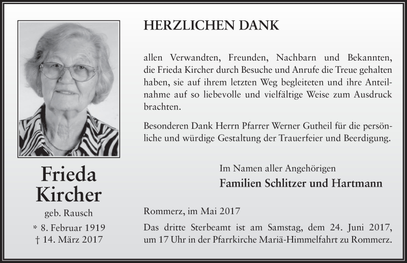 Hier finden Sie alle Traueranzeigen aus der Zeitung, die bisher für Frieda Kircher erschienen sind. Weitere Traueranzeigen, die in der Zeitung erscheinen, werden hier ebenfalls aufgelistet