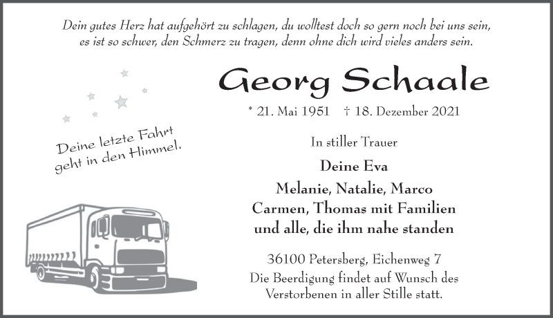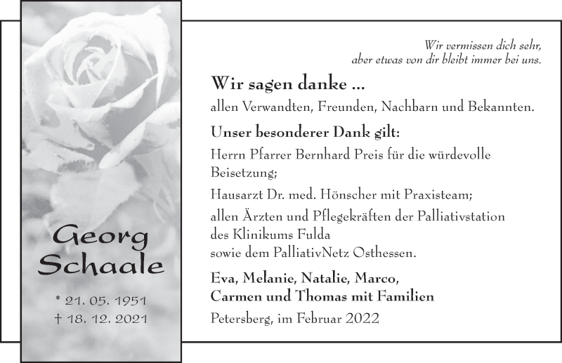 Hier finden Sie alle Traueranzeigen aus der Zeitung, die bisher für Georg Schaale erschienen sind. Weitere Traueranzeigen, die in der Zeitung erscheinen, werden hier ebenfalls aufgelistet