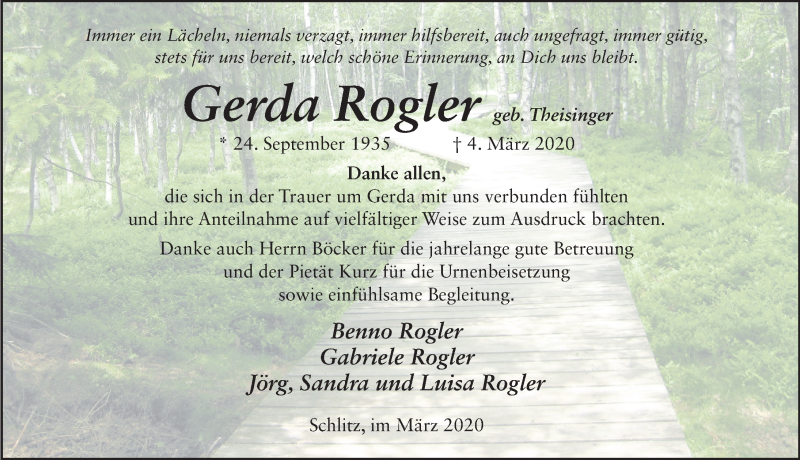 Hier finden Sie alle Traueranzeigen aus der Zeitung, die bisher für Gerda Rogler erschienen sind. Weitere Traueranzeigen, die in der Zeitung erscheinen, werden hier ebenfalls aufgelistet