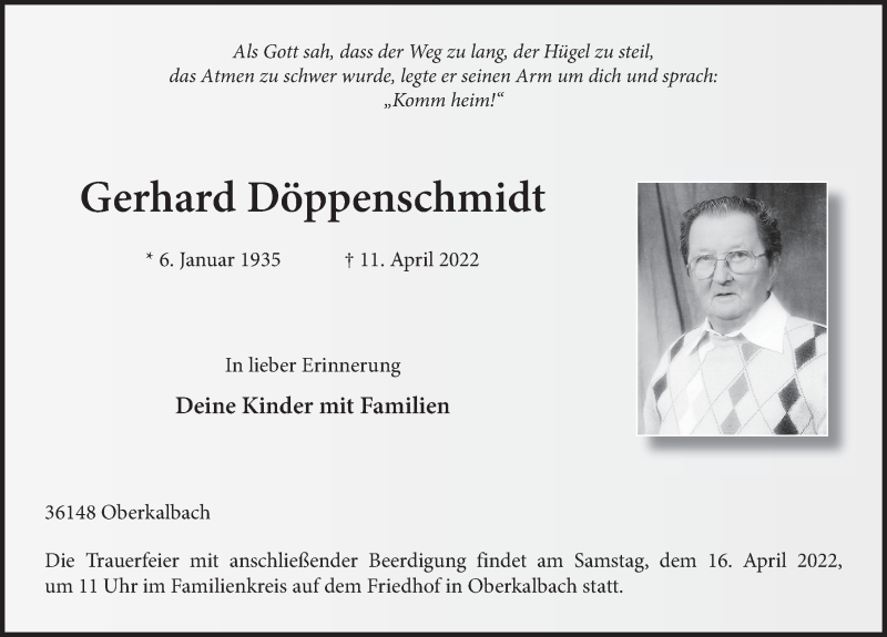 Hier finden Sie alle Traueranzeigen aus der Zeitung, die bisher für Gerhard Döppenschmidt erschienen sind. Weitere Traueranzeigen, die in der Zeitung erscheinen, werden hier ebenfalls aufgelistet