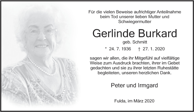 Hier finden Sie alle Traueranzeigen aus der Zeitung, die bisher für Gerlinde Burkard erschienen sind. Weitere Traueranzeigen, die in der Zeitung erscheinen, werden hier ebenfalls aufgelistet