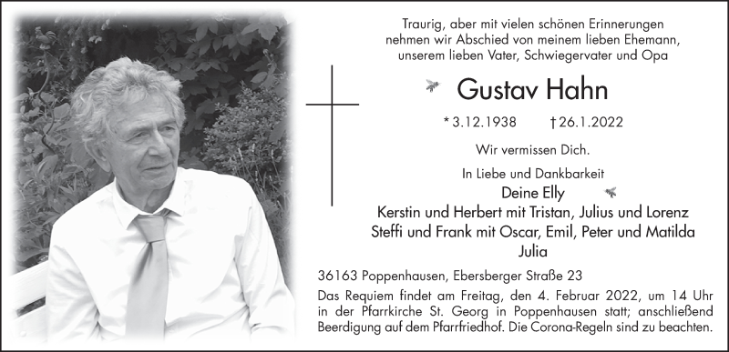 Hier finden Sie alle Traueranzeigen aus der Zeitung, die bisher für Gustav Hahn erschienen sind. Weitere Traueranzeigen, die in der Zeitung erscheinen, werden hier ebenfalls aufgelistet