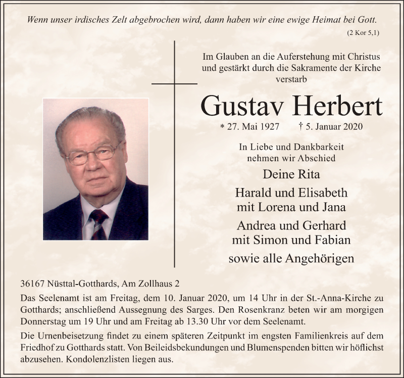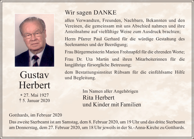 Hier finden Sie alle Traueranzeigen aus der Zeitung, die bisher für Gustav Herbert erschienen sind. Weitere Traueranzeigen, die in der Zeitung erscheinen, werden hier ebenfalls aufgelistet