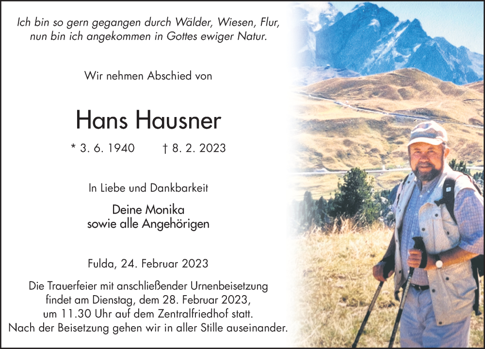 Hier finden Sie alle Traueranzeigen aus der Zeitung, die bisher für Hans Hausner erschienen sind. Weitere Traueranzeigen, die in der Zeitung erscheinen, werden hier ebenfalls aufgelistet