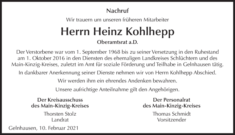 Hier finden Sie alle Traueranzeigen aus der Zeitung, die bisher für Heinz Kohlhepp erschienen sind. Weitere Traueranzeigen, die in der Zeitung erscheinen, werden hier ebenfalls aufgelistet