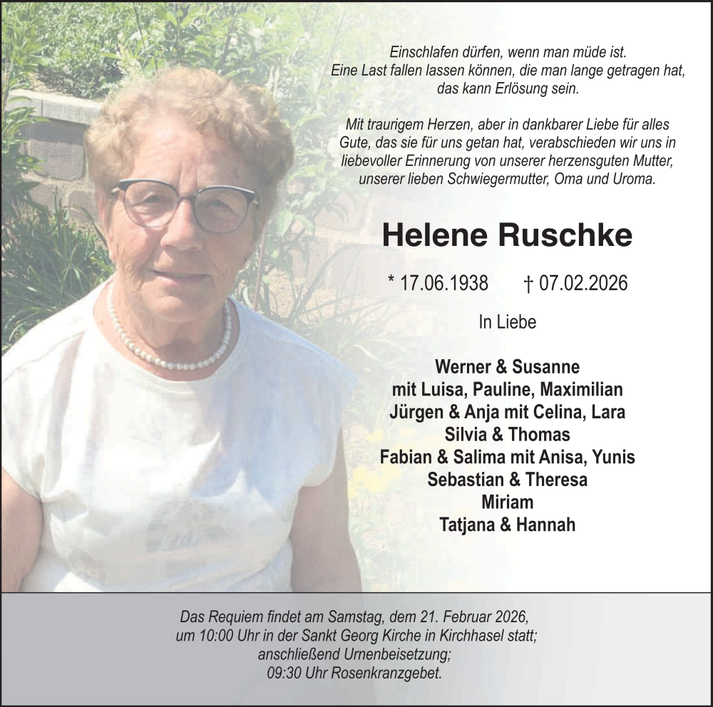 Hier finden Sie alle Traueranzeigen aus der Zeitung, die bisher für Helene Ruschke erschienen sind. Weitere Traueranzeigen, die in der Zeitung erscheinen, werden hier ebenfalls aufgelistet