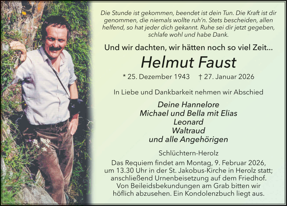 Hier finden Sie alle Traueranzeigen aus der Zeitung, die bisher für Helmut Faust erschienen sind. Weitere Traueranzeigen, die in der Zeitung erscheinen, werden hier ebenfalls aufgelistet