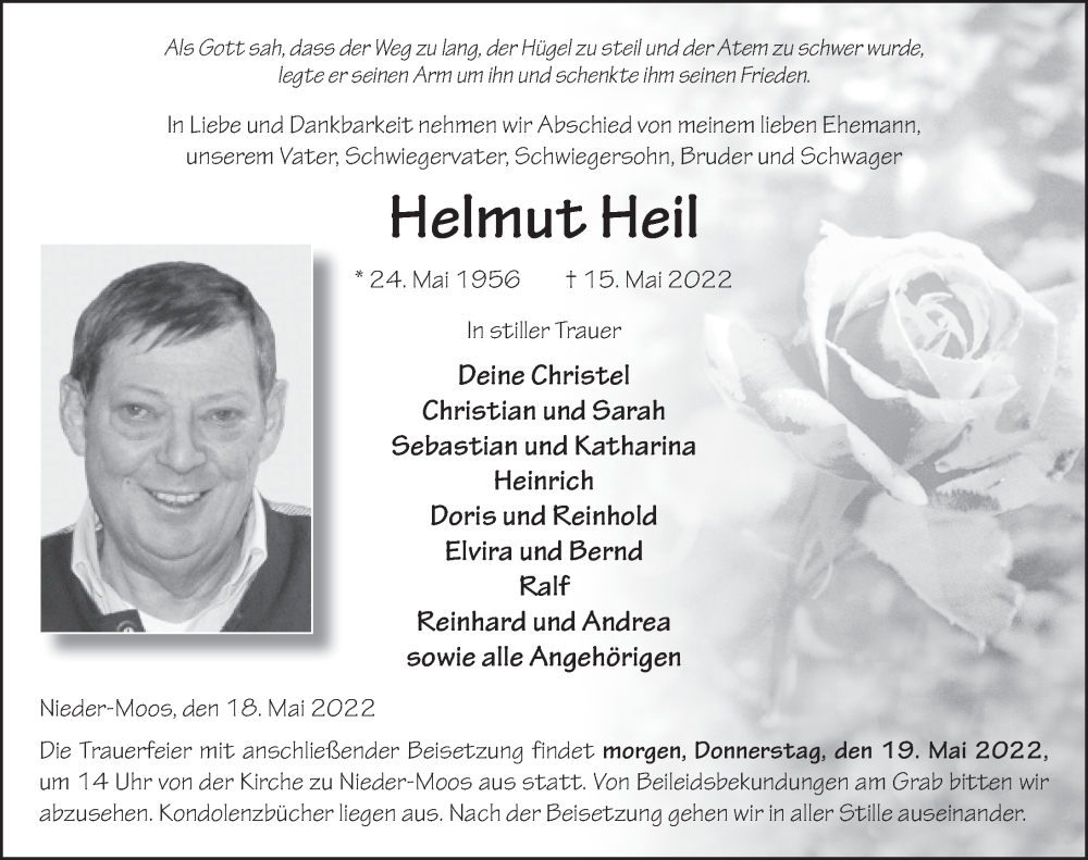 Hier finden Sie alle Traueranzeigen aus der Zeitung, die bisher für Helmut Heil erschienen sind. Weitere Traueranzeigen, die in der Zeitung erscheinen, werden hier ebenfalls aufgelistet
