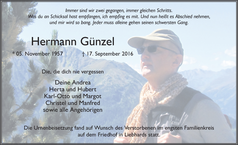 Hier finden Sie alle Traueranzeigen aus der Zeitung, die bisher für Hermann Günzel erschienen sind. Weitere Traueranzeigen, die in der Zeitung erscheinen, werden hier ebenfalls aufgelistet