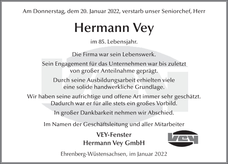 Hier finden Sie alle Traueranzeigen aus der Zeitung, die bisher für Hermann Vey erschienen sind. Weitere Traueranzeigen, die in der Zeitung erscheinen, werden hier ebenfalls aufgelistet