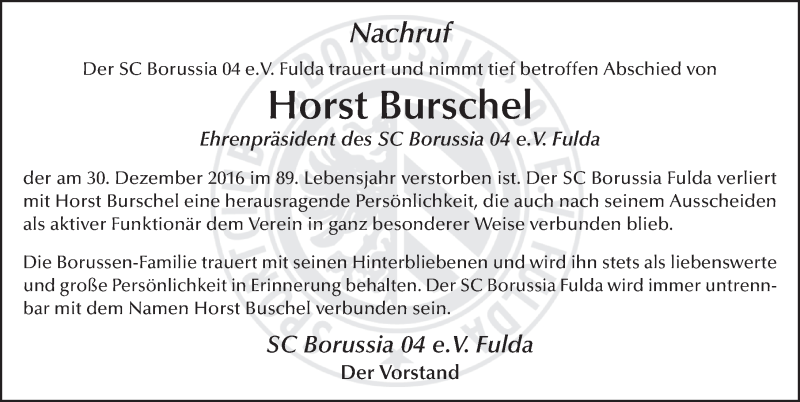 Hier finden Sie alle Traueranzeigen aus der Zeitung, die bisher für Horst Burschel erschienen sind. Weitere Traueranzeigen, die in der Zeitung erscheinen, werden hier ebenfalls aufgelistet