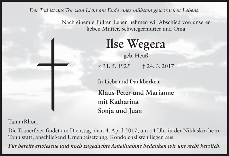 Hier finden Sie alle Traueranzeigen aus der Zeitung, die bisher für Ilse Wegera erschienen sind. Weitere Traueranzeigen, die in der Zeitung erscheinen, werden hier ebenfalls aufgelistet