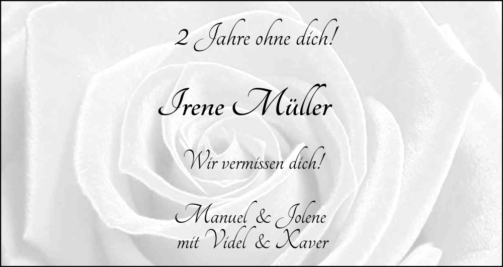 Hier finden Sie alle Traueranzeigen aus der Zeitung, die bisher für Irene Müller erschienen sind. Weitere Traueranzeigen, die in der Zeitung erscheinen, werden hier ebenfalls aufgelistet