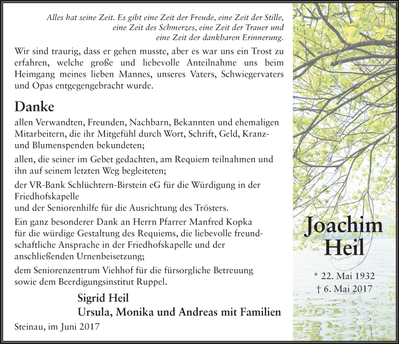 Hier finden Sie alle Traueranzeigen aus der Zeitung, die bisher für Joachim Heil erschienen sind. Weitere Traueranzeigen, die in der Zeitung erscheinen, werden hier ebenfalls aufgelistet
