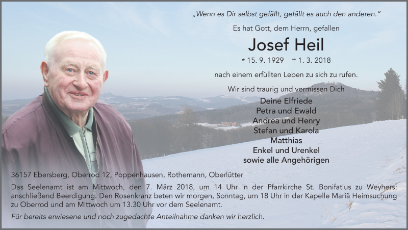 Hier finden Sie alle Traueranzeigen aus der Zeitung, die bisher für Josef Heil erschienen sind. Weitere Traueranzeigen, die in der Zeitung erscheinen, werden hier ebenfalls aufgelistet
