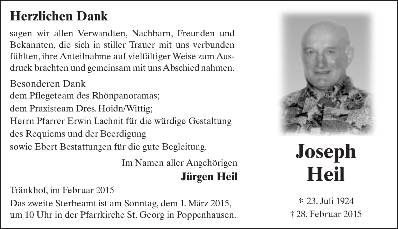 Hier finden Sie alle Traueranzeigen aus der Zeitung, die bisher für Joseph Heil erschienen sind. Weitere Traueranzeigen, die in der Zeitung erscheinen, werden hier ebenfalls aufgelistet