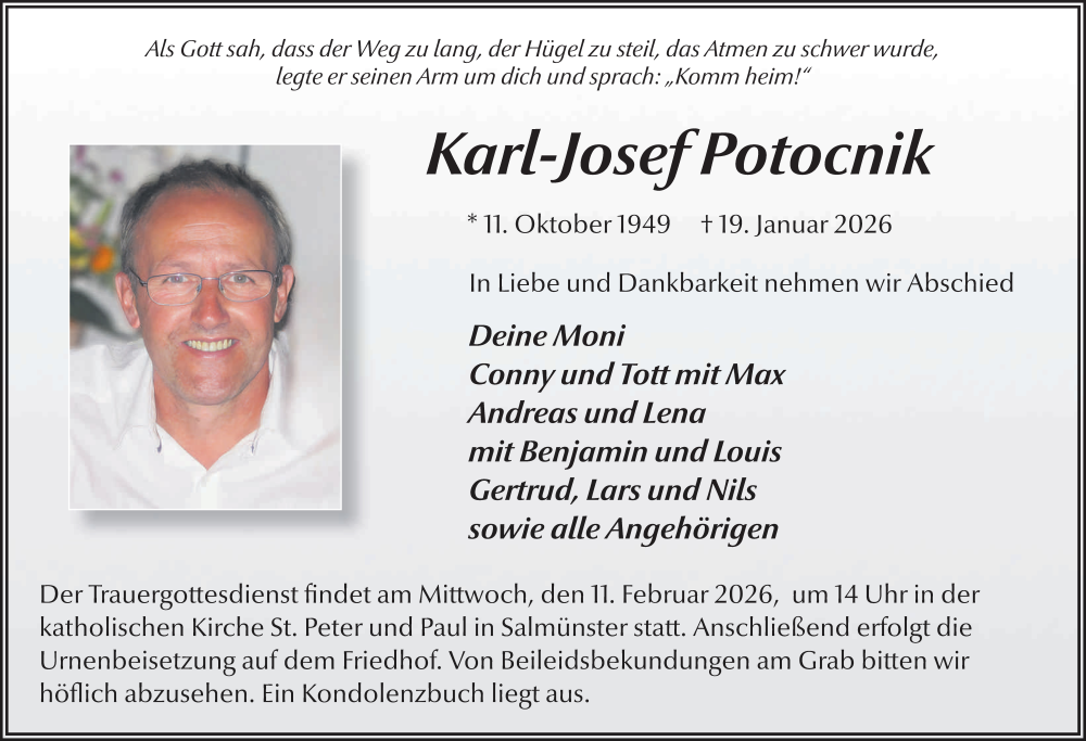 Hier finden Sie alle Traueranzeigen aus der Zeitung, die bisher für Karl-Josef Potocnik erschienen sind. Weitere Traueranzeigen, die in der Zeitung erscheinen, werden hier ebenfalls aufgelistet