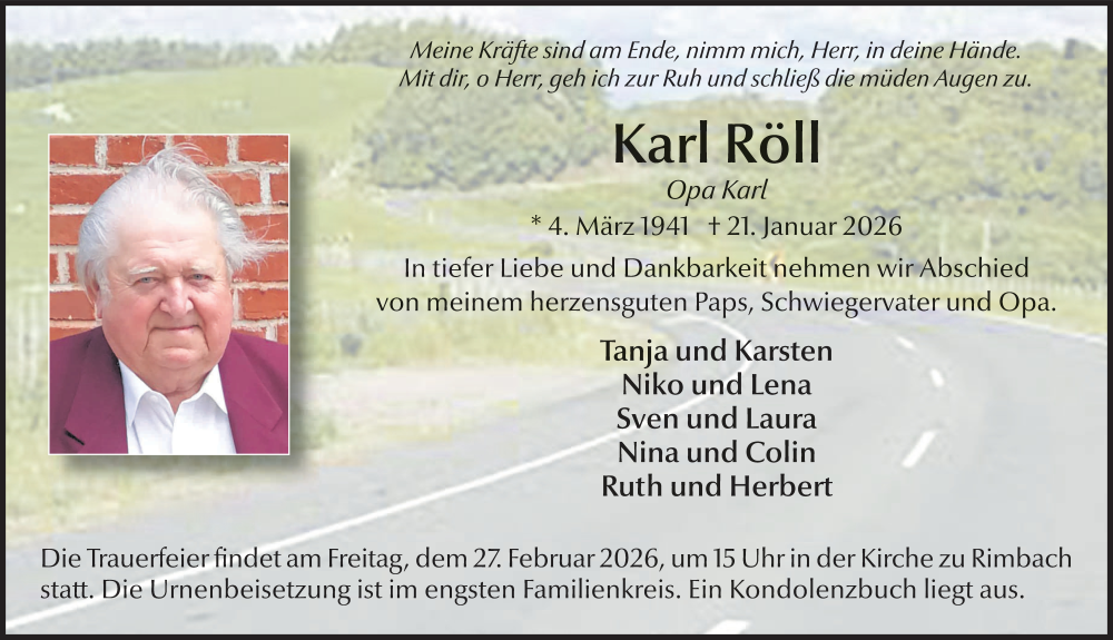 Hier finden Sie alle Traueranzeigen aus der Zeitung, die bisher für Karl Röll erschienen sind. Weitere Traueranzeigen, die in der Zeitung erscheinen, werden hier ebenfalls aufgelistet