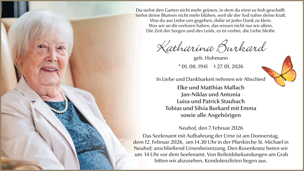Hier finden Sie alle Traueranzeigen aus der Zeitung, die bisher für Katharina Burkard erschienen sind. Weitere Traueranzeigen, die in der Zeitung erscheinen, werden hier ebenfalls aufgelistet