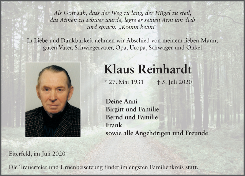 Hier finden Sie alle Traueranzeigen aus der Zeitung, die bisher für Klaus Reinhardt erschienen sind. Weitere Traueranzeigen, die in der Zeitung erscheinen, werden hier ebenfalls aufgelistet