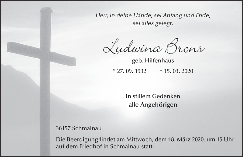 Hier finden Sie alle Traueranzeigen aus der Zeitung, die bisher für Ludwina Brons erschienen sind. Weitere Traueranzeigen, die in der Zeitung erscheinen, werden hier ebenfalls aufgelistet