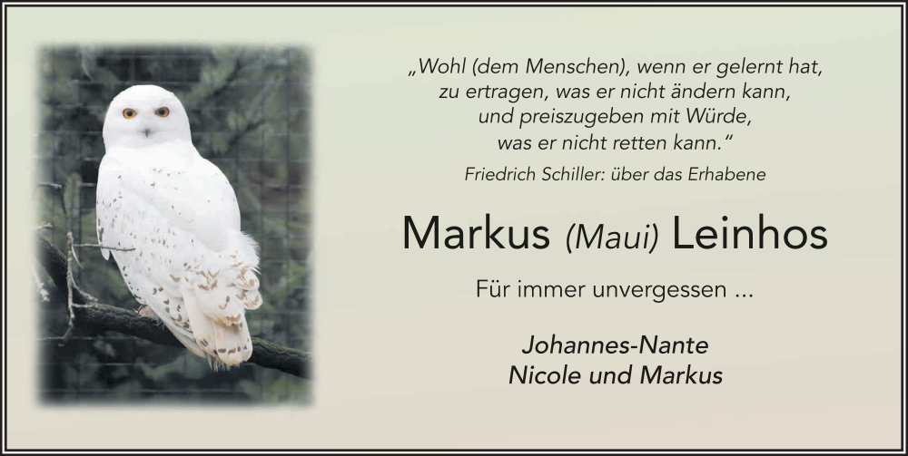 Hier finden Sie alle Traueranzeigen aus der Zeitung, die bisher für Markus Leinhos erschienen sind. Weitere Traueranzeigen, die in der Zeitung erscheinen, werden hier ebenfalls aufgelistet