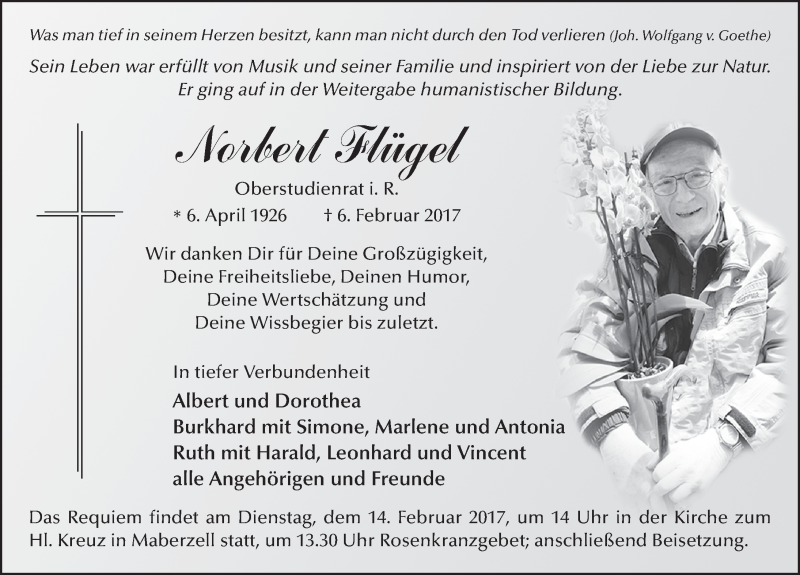 Hier finden Sie alle Traueranzeigen aus der Zeitung, die bisher für Norbert Flügel erschienen sind. Weitere Traueranzeigen, die in der Zeitung erscheinen, werden hier ebenfalls aufgelistet
