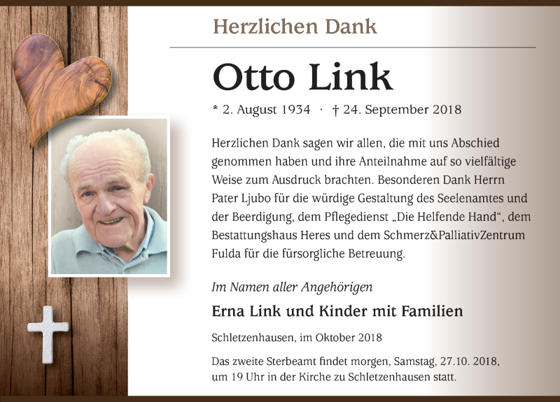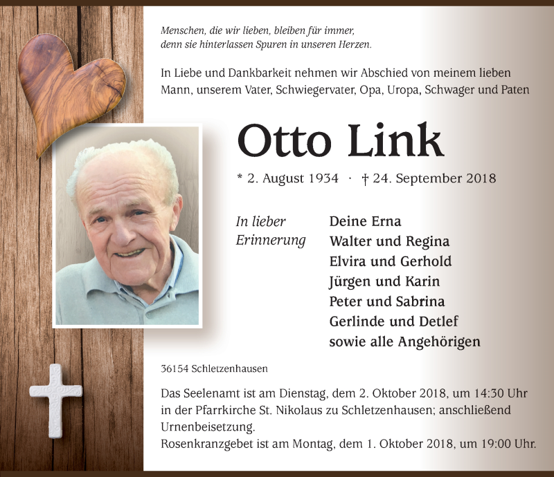 Hier finden Sie alle Traueranzeigen aus der Zeitung, die bisher für Otto Link erschienen sind. Weitere Traueranzeigen, die in der Zeitung erscheinen, werden hier ebenfalls aufgelistet