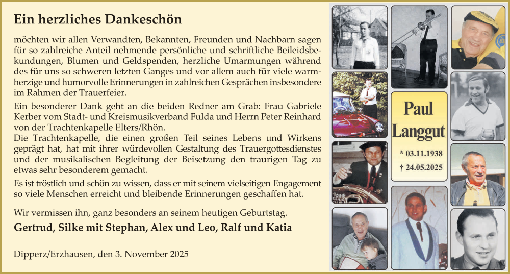 Hier finden Sie alle Traueranzeigen aus der Zeitung, die bisher für Paul Langgut erschienen sind. Weitere Traueranzeigen, die in der Zeitung erscheinen, werden hier ebenfalls aufgelistet