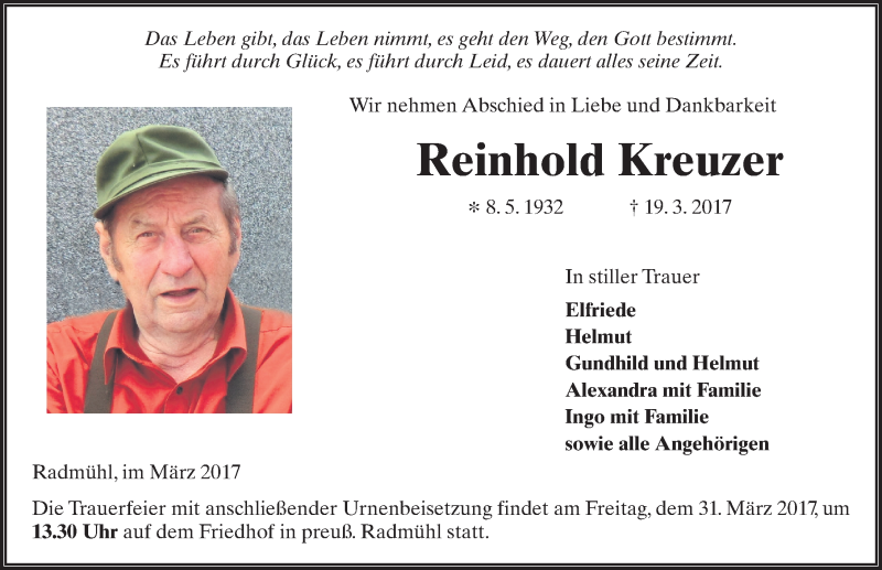 Hier finden Sie alle Traueranzeigen aus der Zeitung, die bisher für Reinhold Kreuzer erschienen sind. Weitere Traueranzeigen, die in der Zeitung erscheinen, werden hier ebenfalls aufgelistet