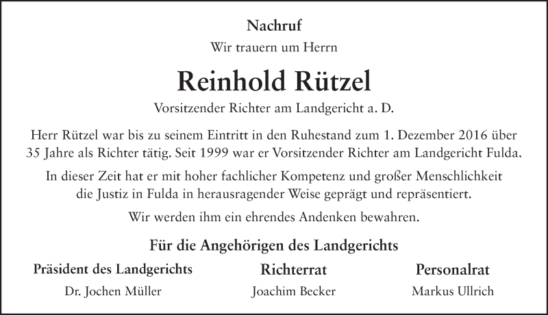 Hier finden Sie alle Traueranzeigen aus der Zeitung, die bisher für Reinhold Rützel erschienen sind. Weitere Traueranzeigen, die in der Zeitung erscheinen, werden hier ebenfalls aufgelistet