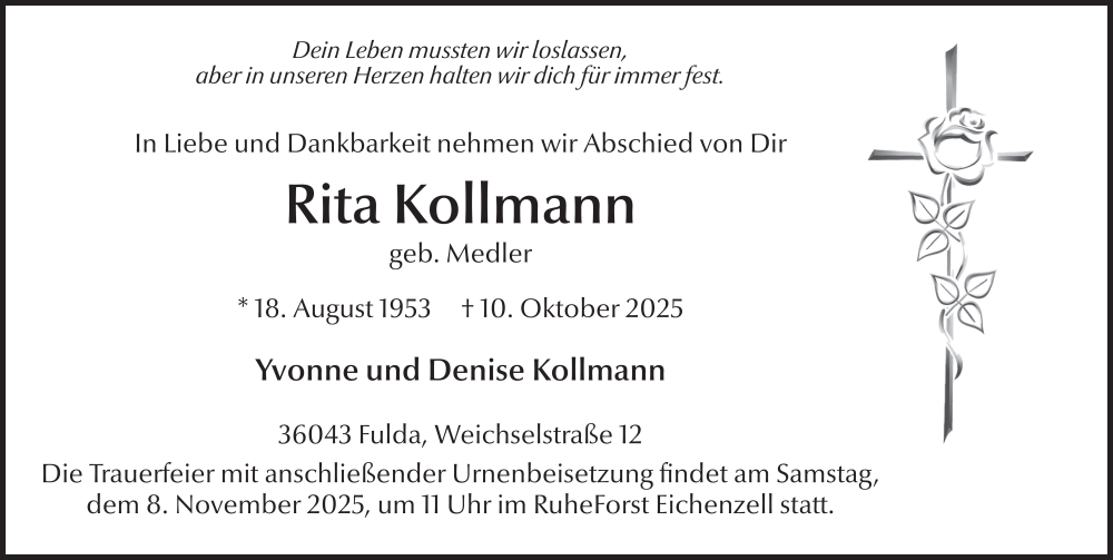 Hier finden Sie alle Traueranzeigen aus der Zeitung, die bisher für Rita Kollmann erschienen sind. Weitere Traueranzeigen, die in der Zeitung erscheinen, werden hier ebenfalls aufgelistet