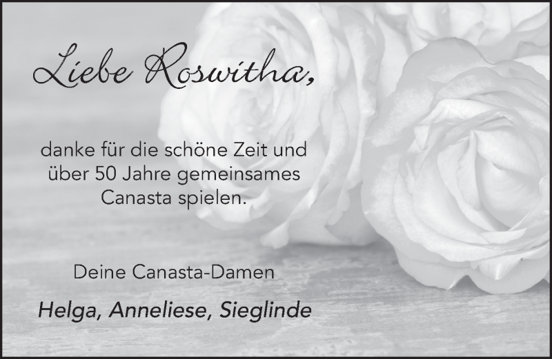 Hier finden Sie alle Traueranzeigen aus der Zeitung, die bisher für Roswitha Born erschienen sind. Weitere Traueranzeigen, die in der Zeitung erscheinen, werden hier ebenfalls aufgelistet