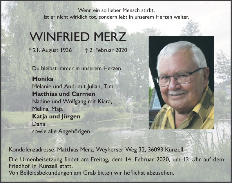Hier finden Sie alle Traueranzeigen aus der Zeitung, die bisher für Winfried Merz erschienen sind. Weitere Traueranzeigen, die in der Zeitung erscheinen, werden hier ebenfalls aufgelistet